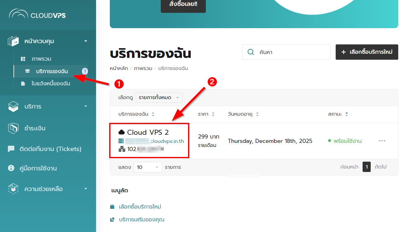 - คลิกที่บริการที่ต้องการ เพื่อเข้าสู่การจัดการ VPS