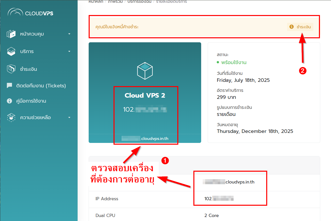 เมื่อคุณใช้บริการของ Cloud VPS จนถึงรอบบิลถัดไป