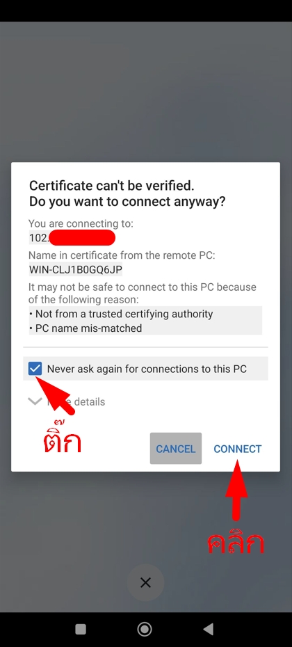 8. หากเข้าเครื่องนี้ครั้งแรกจะเด้งหน้าต่างให้เราตรวจสอบก่อนเข้าเครื่องนั้นๆ