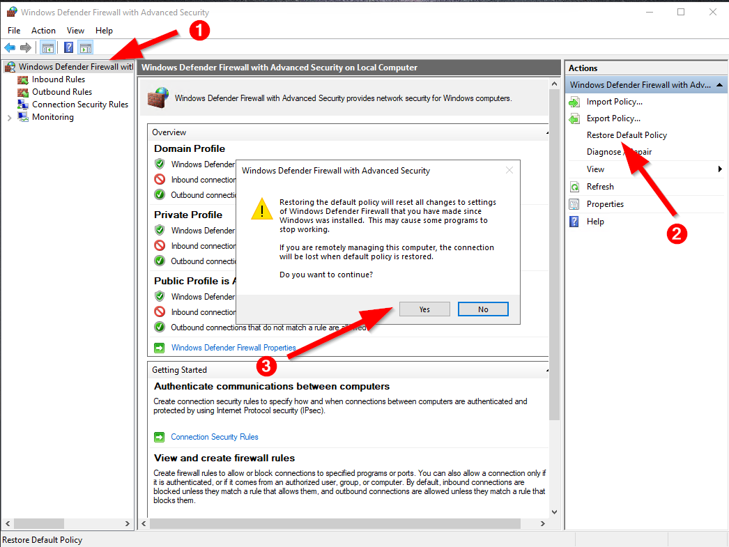 6. เข้าสู่เมนู Windows Defender Firewall with Advanced Security