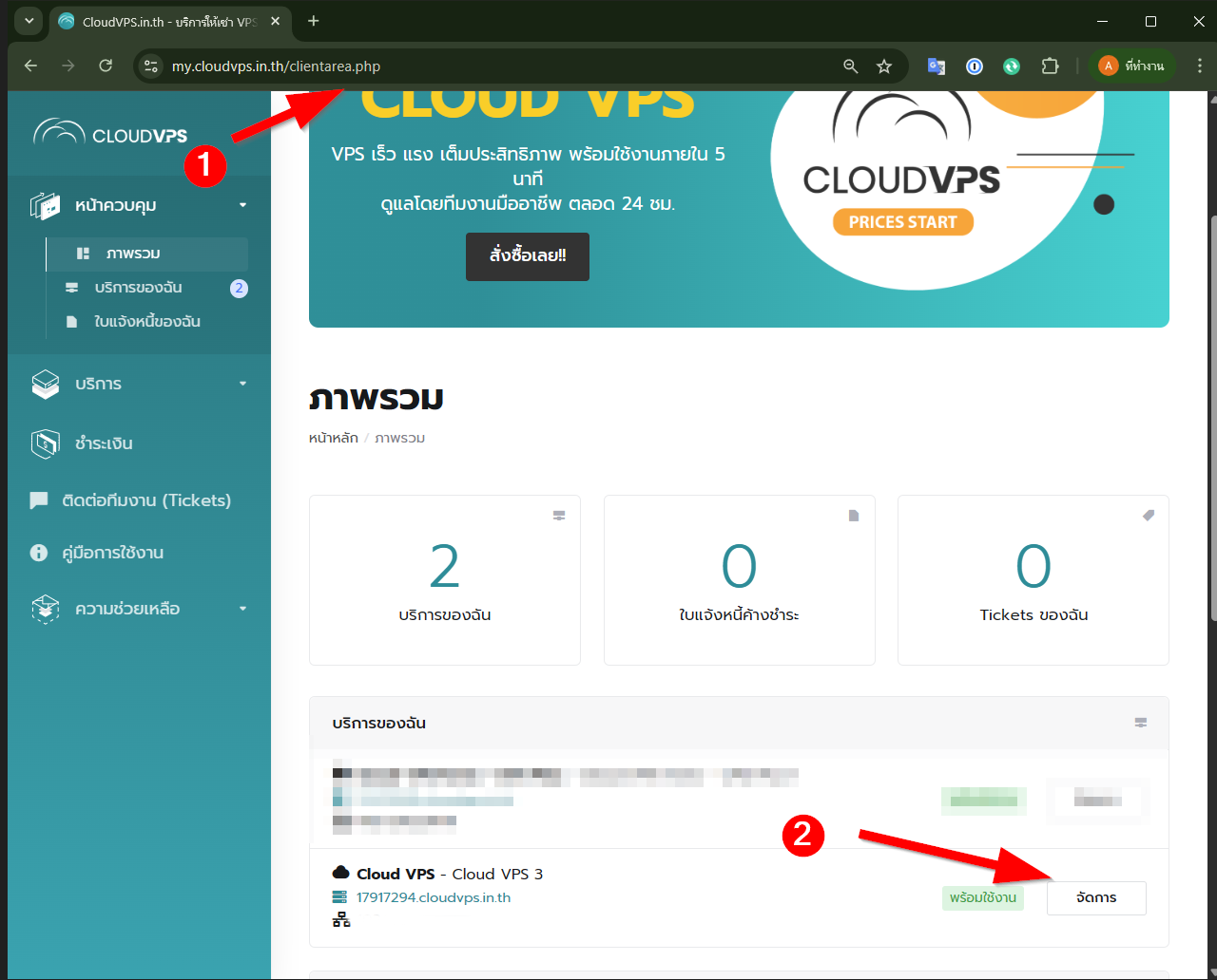 1. เข้าสู่หน้าจัดการ Cloud VPS